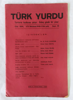 TÜRK YURDU Türklerin Faydasına Çalışır. Onbeş Günde Bir Çıkar, 15 İlkkanun 1942, Sayı: 8