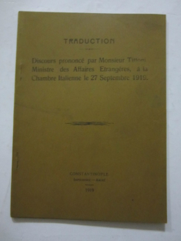 Discours Prononce par Monsieur Tittoni Ministre des Affaires Etrangeres, a la Chambre Italienne le 27 Septembere 1919