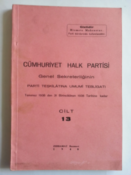 Cümhuriyet Halk Partisi Genel Sekreterliğinin Parti Teşkilatına Umumi Tebligatı, 1 Temmuz 1938 den 31 Birinci Kanun 1938 Tarihine Kadar, Cilt: 13
