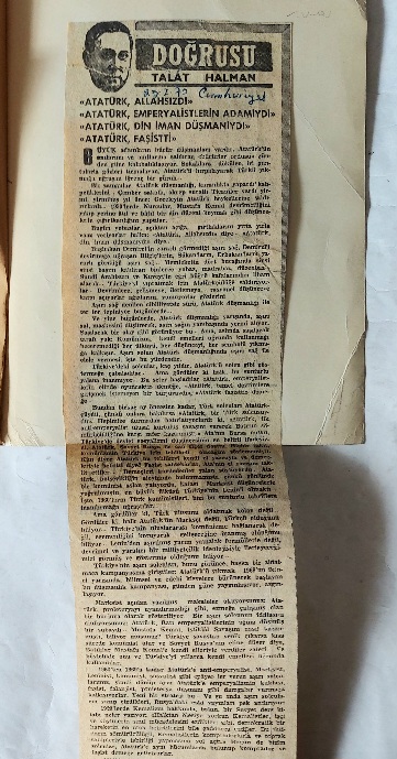 (İç kapaklara ve bir boş sayfasına Atatürk'le ilgili gazete küpürleri yapıştırılmış. Boş sayfaya not alınmış. Sırtta çok hafif yıpranma.)