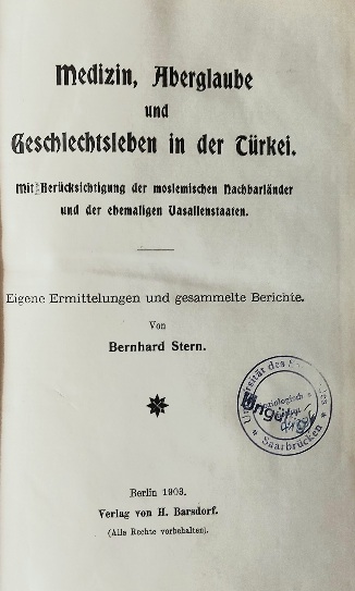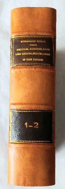 Yazar: Bernhard Stern Yayıncı: Verlag von H. Barsdorf Basım yeri: Berlin Basım Tarihi: 1903 Dil: Almanca Sayfa Sayısı: 437+417 s. Ebat: 16x24 Açıklama: Orta Doğu ve Balkan halklarının aşk ve çekicilik, baştan çıkarma ve evlilik, sadakat ve utanç, fahişelik ve onanizm, doğum ve emzirmeye kadar cinsel kültüre ilişkin akla gelecek ve gelmeyecek bütün konuları; özellikle İslam dünyası, müslüman evliliği ve cinselliğine ilişkin ilmihali ve Osmanlı Padişahlarının evlilikleri ve harem üstünde durarak; Kitab-ı Mukaddes ve Kur'an-ı Kerim, Zerdüştlük ve Eski Yuınan'a kadar kökenleri, kuralları ve folkloru ile; ve dünyanın bir çok yerinden karşılaştırmalarıyla ansiklopedik biçimde aktaran nadir kitap.
