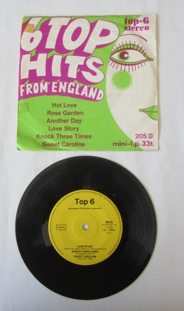 45'LİK PLAK: 6 Top Hits from England, Hot Love - Rose Garden - Another Day - Love Story - Knock Three Times - Sweet Caroline