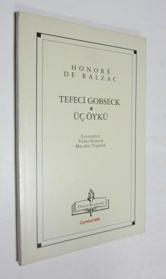 Yazar: Balzac Çevirmen: Vedat Günyol, Mücahit Topalak Yayıncı: Cumhuriyet Basım yeri: İstanbul Basım Tarihi: 1999 Dil: Türkçe Sayfa Sayısı: 144 s. Ebat: 12x18 Açıklama: Orijinal karton kapağında.