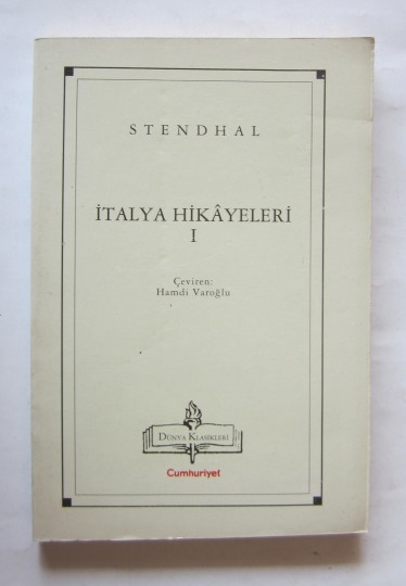 Yazar: Stendhal Çevirmen: Hamdi Varoğlu Yayıncı: Cumhuriyet Basım yeri: İstanbul Basım Tarihi: 1998 Dil: Türkçe Sayfa Sayısı: 176 s. Ebat: 12x18 Açıklama: Orijinal karton kapağında.