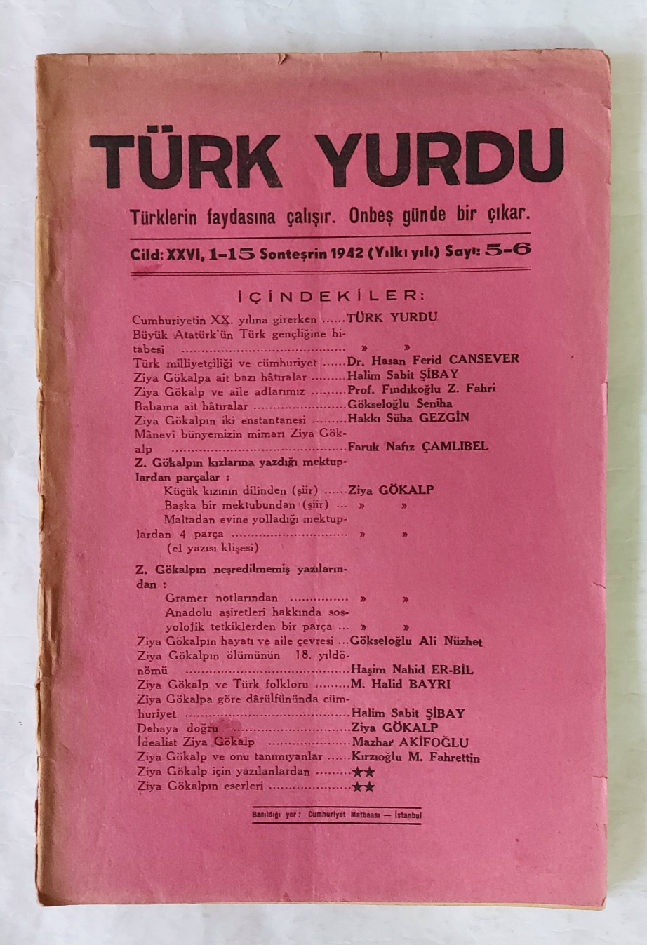 TÜRK YURDU Türklerin Faydasına Çalışır. Onbeş Günde Bir Çıkar, 1-15 Sonteşrin 1942, Sayı: 5-6
