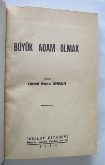 Yazar: Cemil Sena Ongun Yayıncı: İnkılap Kitabevi Basım yeri: İstanbul Basım Tarihi: 1940 Dil: Türkçe Sayfa Sayısı: 191 s. Ebat: 14x20 Açıklama: Sanatkarane baskılı bez cildinde.