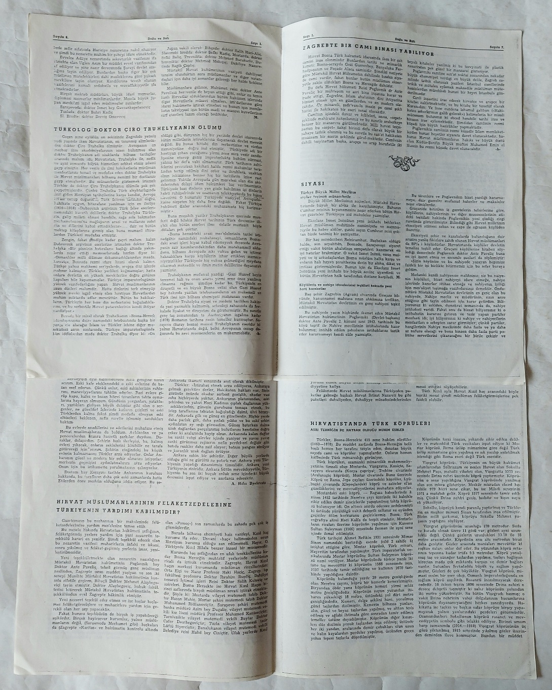 DOĞU VE BATI Kültür, Iktısat, Sosiyal ve Siyasi Mecmua, Zagreb, 6 Nisan 1943 - 7 Haziran 1943, Sarajevo, Yıl: I, Sayı: 1, 2 [2 ADET XEROX]