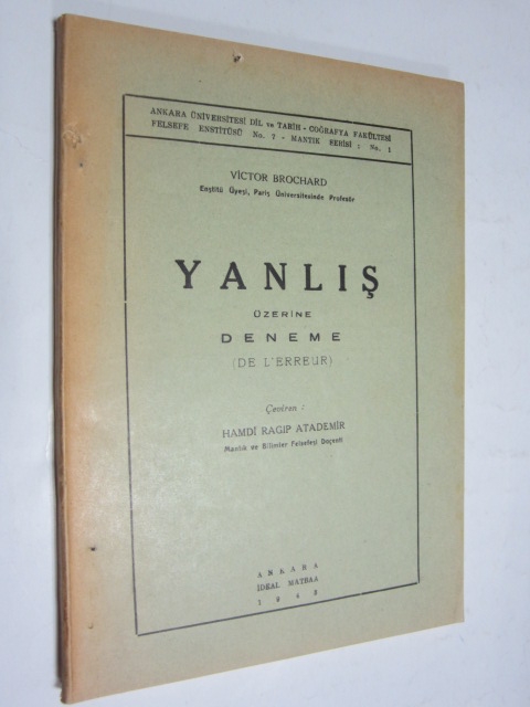 Yanlış Problemi Üzerine, Eflatun'un Kuramı, Descartes'in Kuramı, Spinoza'nın Kuramı, Hakikat Üzerine, İnanç Üzerine, Yanlışın Tabiatı Üzerine, Yanlışın Lojik Şartları Üzerine, Yanlışın Psikolojik Sebepleri Üzerine, Yanlışın Fizikötelik İlkesi Üzerine.