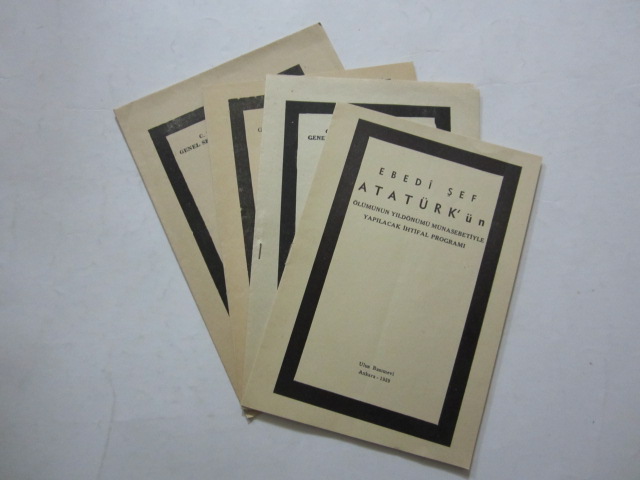Ebedi Şef Atatürk'ün Ölümünün Yıldönümü Münasebetiyle Yapılacak İhtifal Programı; Ankara Ulus Basımevi, 1939, 8 s.