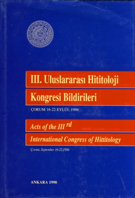 III. Uluslararası Hititoloji Kongresi Bildirileri, Çorum, 16 - 22 Eylül 1996
