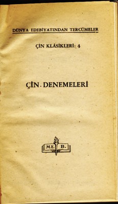 Çin Denemeleri /Çin Hikayeleri /Müzik Hakkında Notlar (Konfüçyus Felsefesine Ait Metinler)