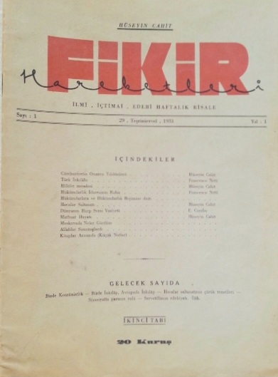FİKİR HAREKETLERİ İlmi, İçtimai, Edebi Haftalık Risale, 1933 - 1936, Cilt: 1 - 5, Sayı: 1 - 130 [İLK 5 CİLT]