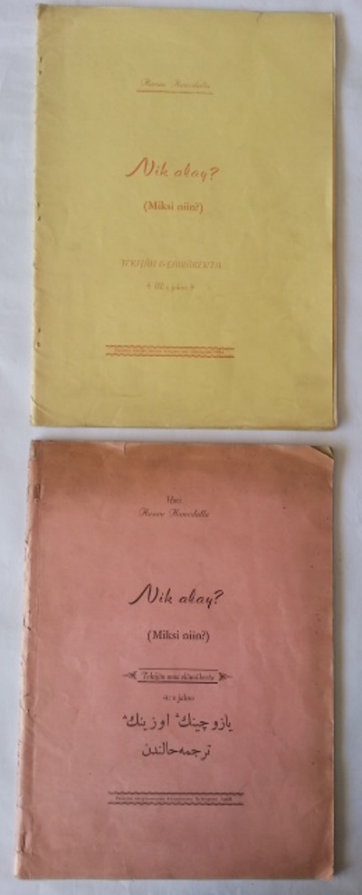 Helsinki’de basılmış Arap harfli Türkçe, Tatarca, kapakların bir yüzü Fince, diğer yüzü Türkçe iki sayı dergi.