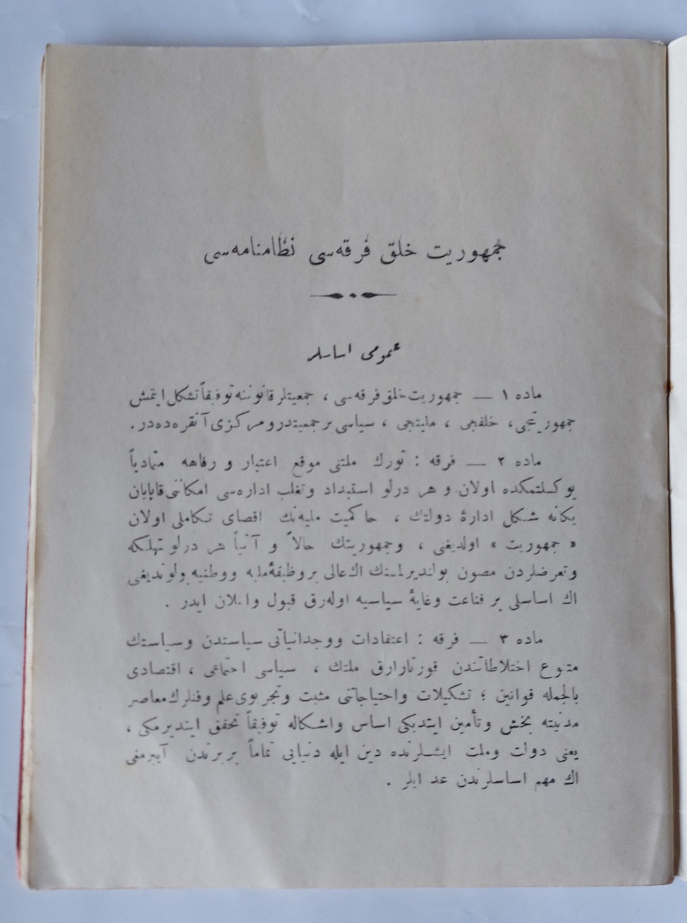 15 Teşrin-i evvel 1927’de inikad eden Cumhuriyet Halk Fırkası büyük kongresinin 22 Teşrin-i evvel 1927 tarihli içtimaında bilmüzakere kabul edilmiştir.