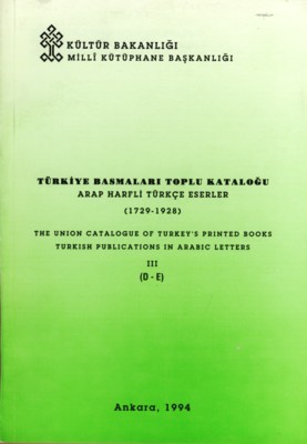 Türkiye Basmaları Toplu Kataloğu, Arap Harfli Türkçe Eserler (1729-1928), III. Cilt (D-E)