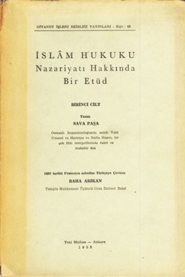 Osmanlı İmparatorluğu valilerinden, Galatasaray müdürü, Hariciye ve Nafıa nazırı Sava Paşa’nın, İslam hukukunu bugünkü sistematikle kavramaya yardımcı eseri.