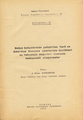 | Yayıncı | A.Ü. Ziraat Fakültesi |