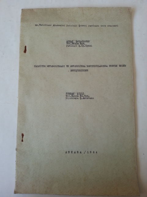 As. Veteriner Akademisi Patoloji Şubesi Yardımcı Ders Semineri, Kalsiyum Metabolizması ve Metabolizma Bozukluklarında Husule Gelen Değişiklikler
