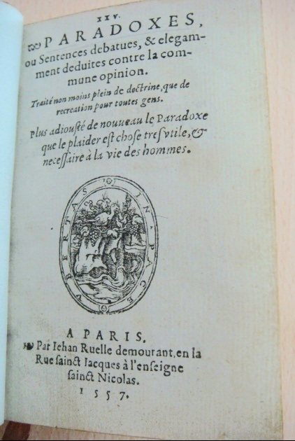 XXV. Paradoxes ou Sentences Debatues & et Elegamment Ceduites Contre la Commune Opinion... Plus Adjouste; de Nouveau Que le Plaider est Chose Tres utile et necessaire ae; la vie des hommes
