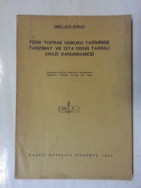 Türk Toprak Hukuku Tarihinde Tanzimat ve 1274 (1858) Tarihli Arazi Kanunnamesi