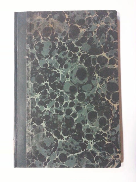 Döneminin köşebentli ebrulu bez-karton cildinde.