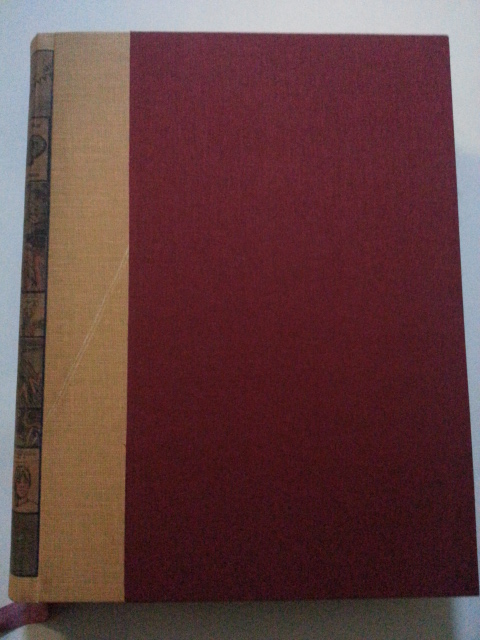Yan kağıtları ebrulu, sanatkarane baskılı bez cildinde.