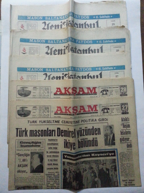 Süleyman Demirel'in Masonluğuyla ilgili döneminin 5 adet gazetesi