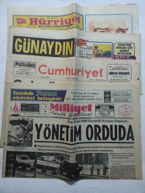 ÖZEL GÜN GAZETESİ: 12 Eylül Haberli, Milliyet 12 Eylül 1980, Cumhuriyet 12 Eylül 1980, Günaydın 12 ve 13 Eylül 1980, Hürriyet 13 Eylül 1980