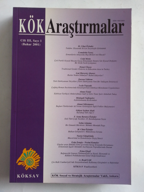 KÖK ARAŞTIRMALAR Kök Sosyal ve Stratejik Araştırmalar Dergisi, Bahar 2001, Cilt: III, Sayı: 1