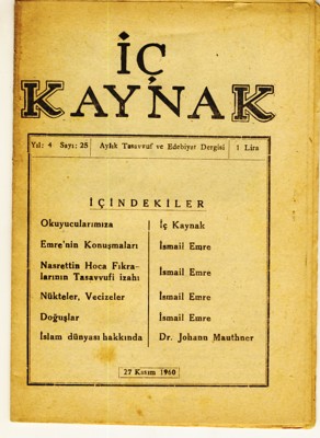 İÇ KAYNAK Aylık Tasavvuf ve Edebiyat Dergisi, Kasım 1960, Sayı: 25