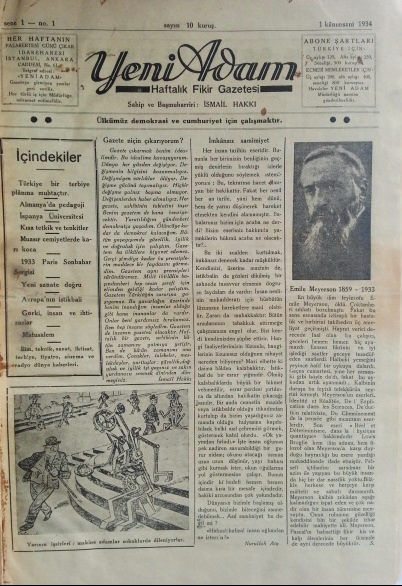 1933 Üniversite Reformu'nda kadro dışı kalan eski Darülfünun emini, Müderris İsmayıl Hakkı Baltacıoğlu, geçinebilmek maksadıyla ve kendine en yakın gördüğü dergi çıkarma işine girişmiştir. Ocak 1934'te yayınlamaya başladığı Yeni Adam, yalnız geçinecek kadar para kazanmak zorunluluğundan doğmuş ama döneminin edebiyat, fikir, sanat hayatına damgasını vurmuş ve günümüze de etkisini taşımıştır. Gayretle, ısrarla, çalışkanlıkla, entellektüel sermayeyle ve 'öldükten sonra bile' dergisini çıkarmaya devam etmiş, 45. yılda, 928. sayıda durmuştur.
