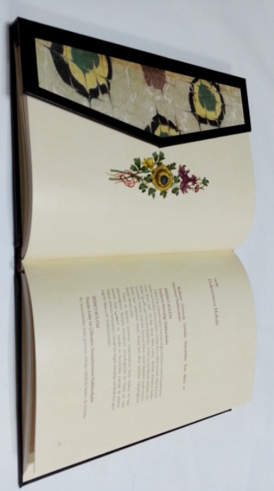 Yayıncısının ebrulu, mıklepli komple deri cildinde.