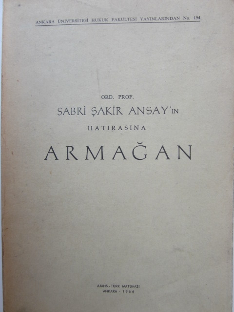 Ord. Prof. Dr. Sabri Şakir Ansay'ın Anısına Armağan