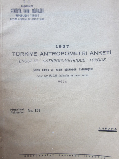 1937 Türkiye Antropometri Anketi, 59728 Erkek ve Kadın Üzerinde Yapılmıştır