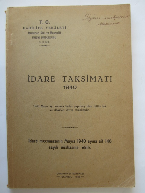 1940 Mayıs Ayı Sonuna Kadar Yapılmış Olan Bütün Fek ve İlhakları İhtiva Etmektedir.