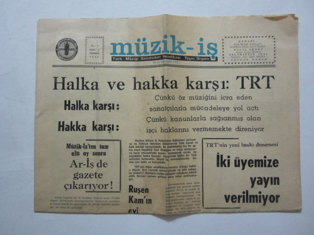 MÜZİK-İŞ Türk Müziği Sanatçıları Sendikası Yayın Organı, Temmuz 1968, Sayı: 5