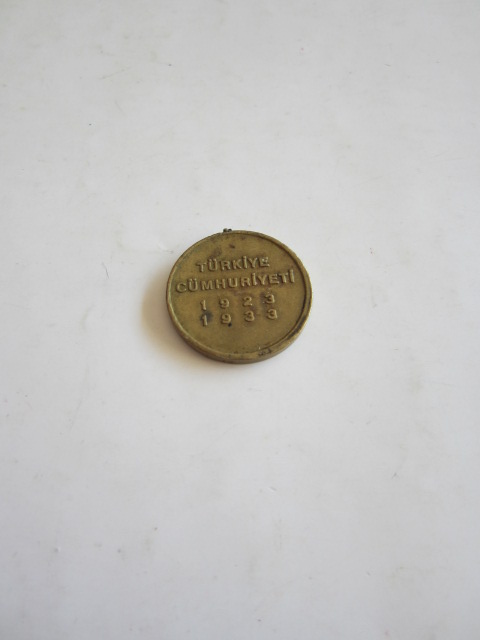 KÜÇÜK OBJE: Türkiye Cumhuriyeti 1923 - 1933 10. Yıl Madalyonu, Pirinç