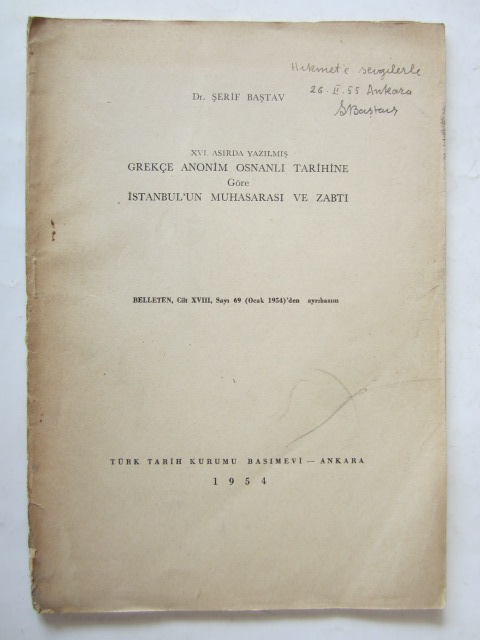 XVI. Asırda Yazılmış Grekçe Anonim Osmanlı Tarihine Göre İstanbul'un Muhasarası ve Zabtı [İMZALI]
