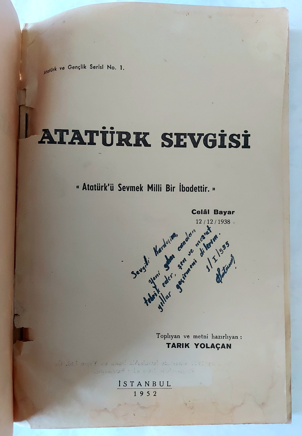 (Künyede hediye yazısı. Sırt rutubetten nem kapmış. İç temiz.)