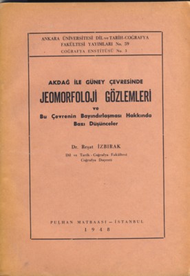 Akdağ ile Güney Çevresinde Jeomorfoloji Gözlemleri ve Bu Çevrenin Bayındırlaşması Hakkında Bazı Düşünceler