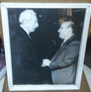 Ahmet Muhip Dranas ile Süleyman Demirel el sıkışıyor. 1960-70'li yıllara ait olduğu sanılmaktadır. Döneminin ahşap çerçevesinde, siyah-beyaz, büyük boy (30x37), görülmemiş, yayınlanmamış bir fotoğraf.