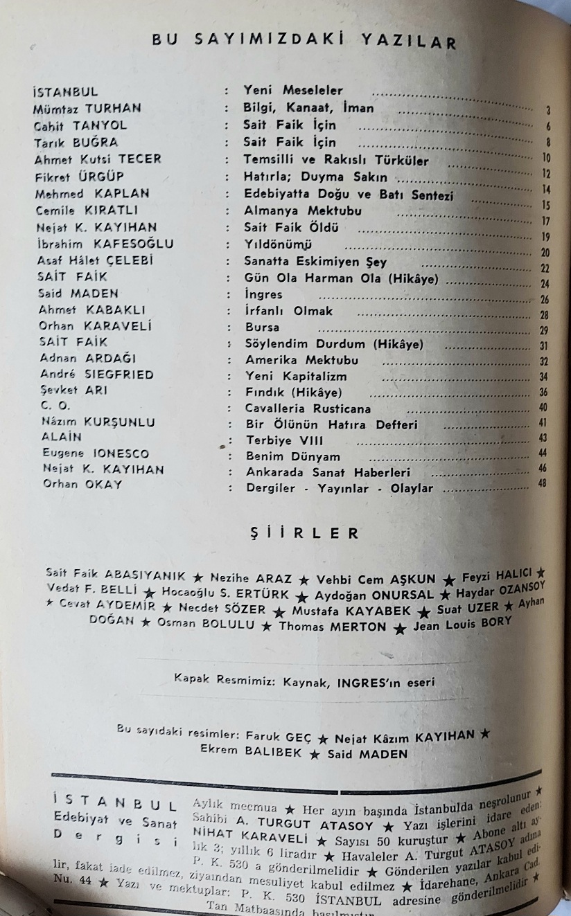 Cilt 1: Kasım 1953 - Ekim 1954 / Sayı: 1, 2, 3, 4, 5, 6, 7, 8, 9, 12,