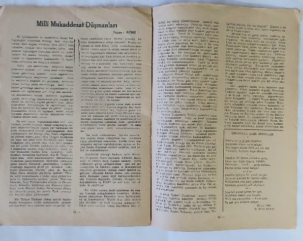 Yazar: M. Fahrettin Kırzıoğlu (Yazı İşleri) Hazırlayan: İhsan Koloğlu (Sahibi) Basım yeri: İstanbul Basım Tarihi: 1947 Dil: Türkçe Sayfa Sayısı: 20 s. Ebat: 20x30 Açıklama: Orijinal karton kapağında.