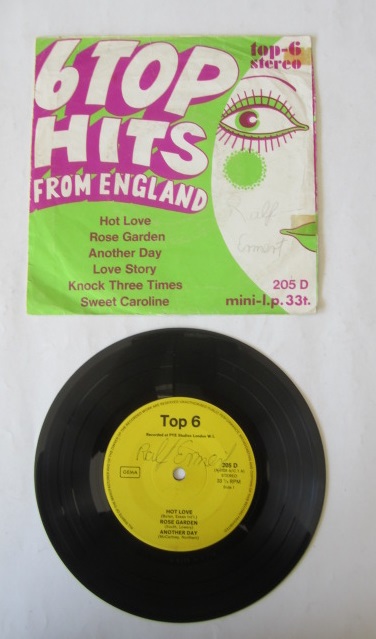 45'LİK PLAK: 6 Top Hits from England, Hot Love - Rose Garden - Another Day - Love Story - Knock Three Times - Sweet Caroline
