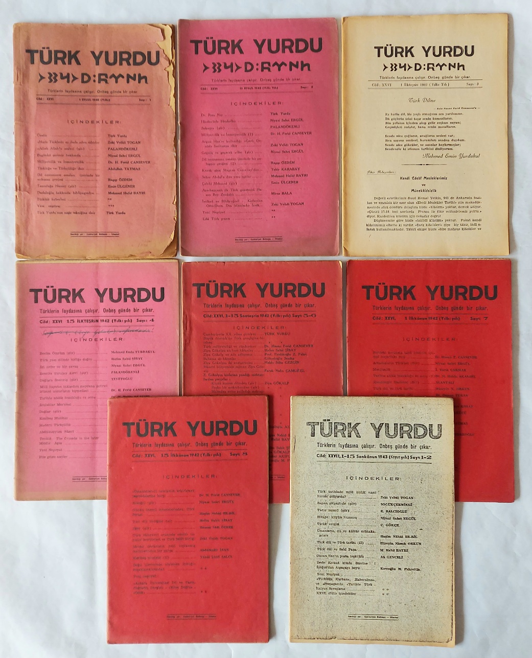 TÜRK YURDU Türklerin Faydasına Çalışır. Onbeş Günde Bir Çıkar, 1 Eylül 1942 - 1-15 Sonkanun 1943, Sayı: 1 - 8, 1 - 2 [3. SERİ TAKIM, 8 ADET 10 SAYI]