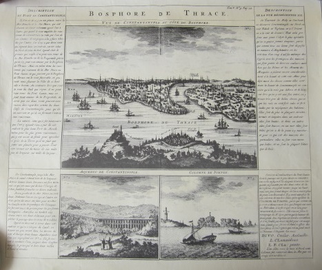 GRAVÜR: 1732 Bosphore de Thrace Vue de Constantinople du Cote du Bosphore [REPRINT]