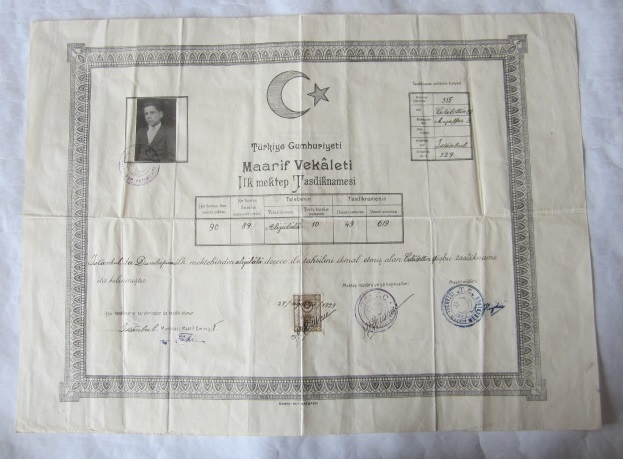 TASDİKNAME: T. C. Maarif Vekaleti İlkmektep Tasdiknamesi Celalettin'e Ait 1929
