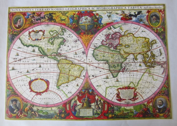 HARİTA: Nova Totivs Terrarvm Morbis Geographica ac Hydrographica Tabvla Auct. Henr Hodio - 1630 Dünya Haritası [REPRINT]